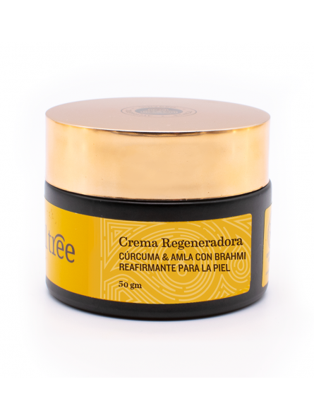 Crema facial Anti-edad, fórmula ayurveda con Cúrcuma, Amla y Brahmi rejuvenece, hidrata y aporta brillo a la piel.